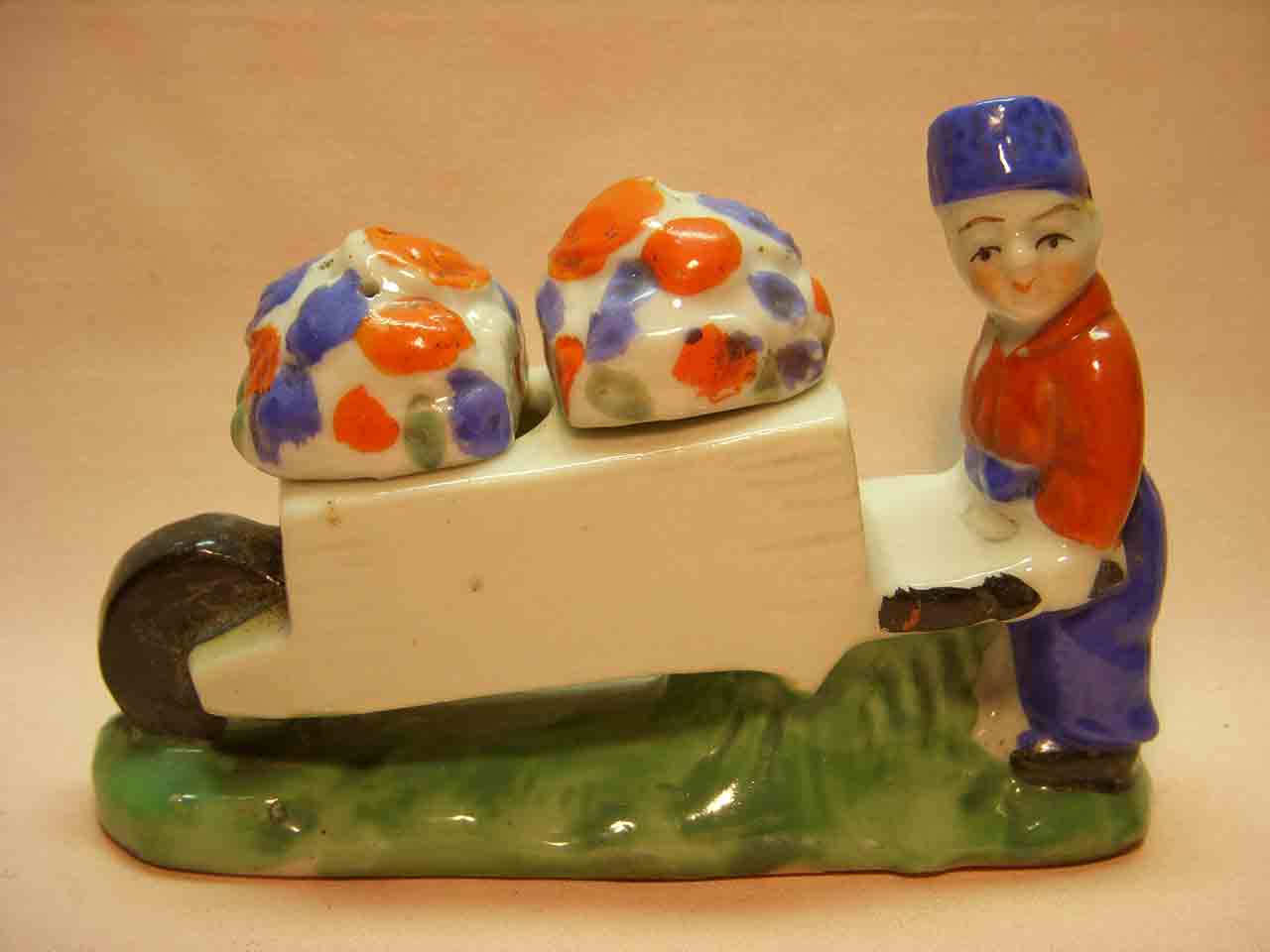 A CART set is typically an animal pulling a cart or wagon with shakers sitting on or hanging from the cart and possibly a sugar and creamer and/or vinegar and oil.
