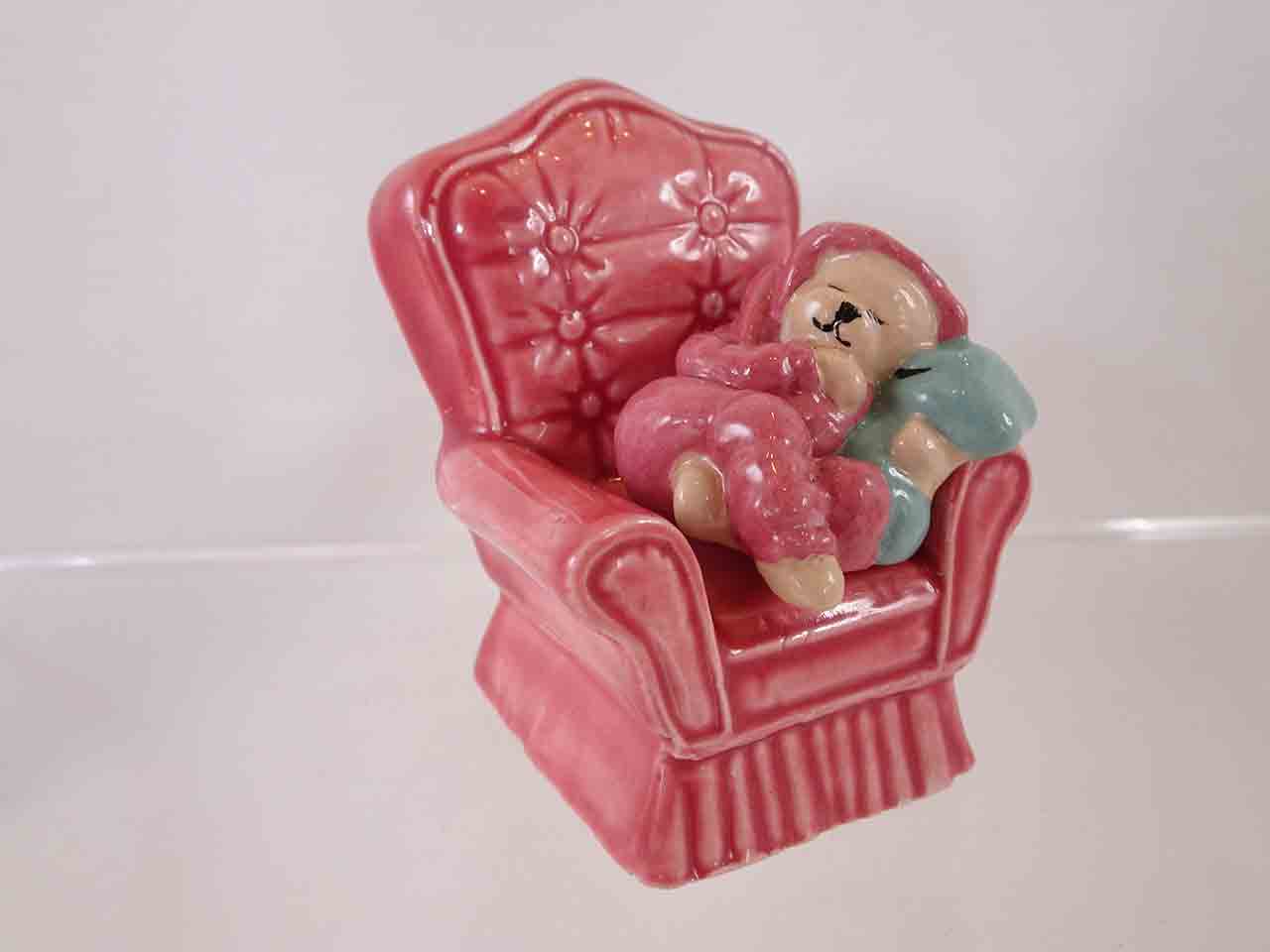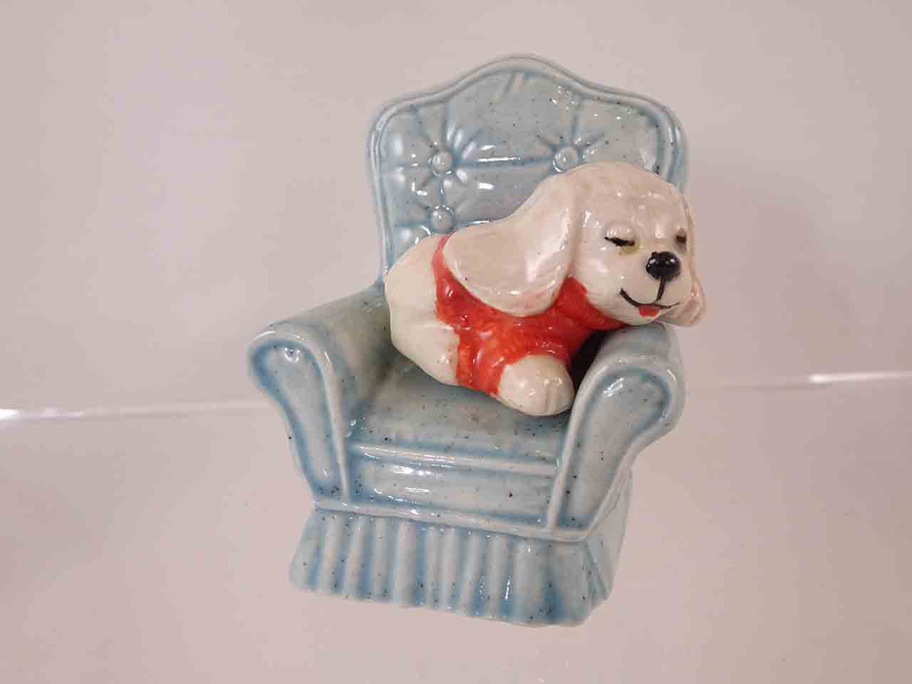 This featured set is a dog that has fallen asleep on a sofa chair, but we also have a similar set with a bear sleeping on the same chair. Both look like they tried to stay up to get a glimpse of Santa Claus, but couldn't make it.