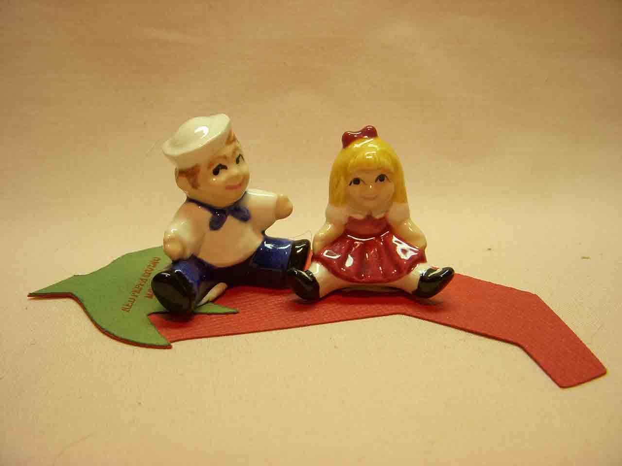 Arcadia Ceramics produced some of the finest and most detailed sets in the 1950’s. The dress form and sewing machine set from Arcadia is shown in its’ original “dome” packaging making it more valuable than sets without.