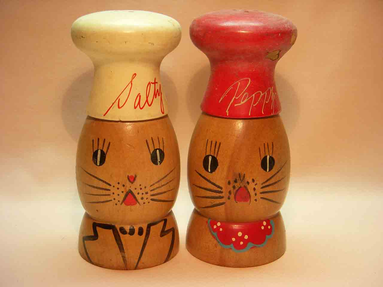SQUEAKER shakers usually have a noise maker built into the base of each shaker that makes a meowing or crying noise whenever the shaker is turned over.